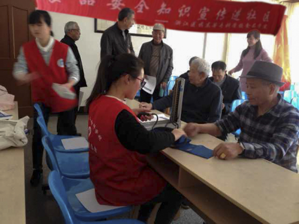 在老人活动中心二楼举办的活动中,不断有因为感兴趣的社区居民加入志愿者们开展的活动中来。大家都非常期待,不仅测量血压的活动场地周围的人数爆棚,安全知识科普的两个主讲志愿者也被社区居民热烈的包围。志愿者们也和社区居民积极互动,在各种游戏的方式下,为社区居民进行食品安全知识的科普。面对一个个求知欲望非常旺盛的居民们,志愿者们热情积极的为他们提供自己力所能及的帮助,赢得了广泛的好评。